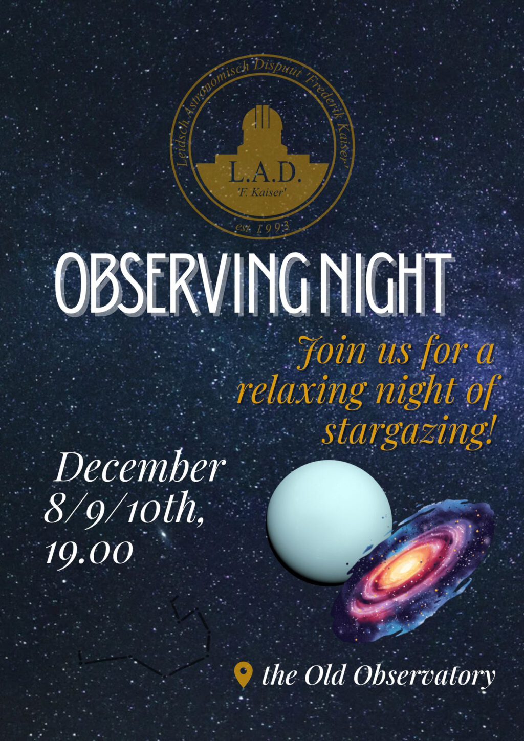 Observing night December 8/9/10th! 🔭🌃 Need a break from all your studying for your upcoming exams? Join us for a chill night of stargazing accompanied by a mug of hot chocolate ☕️ on December 8, 9 or 10th from 19.00h onwards! We will be deciding on the date at the end of next week. If…