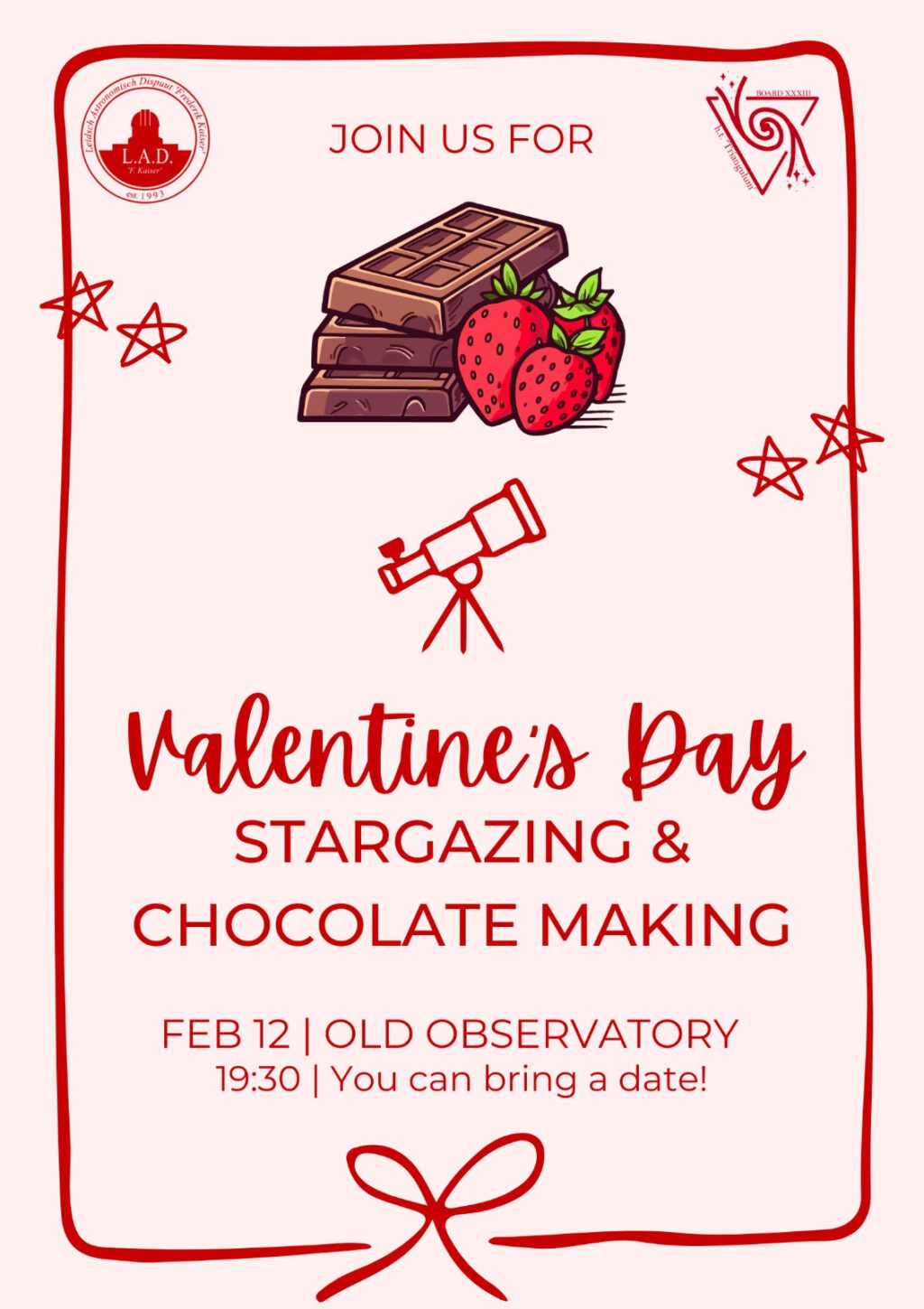 Star-crossed lovers or the companion to your binary? 💫 For Valentine’s day, we will be having an observing night on February 12th from 19:30 onward at the Old Observatory! Alongside the stargazing, we will be making Valentine’s Day chocolates (bonbons) by hand! There is no sweeter gift you can give ✨ If you like, you can bring the one you gravitate toward as a date! 💖 Sign up via the link in our bio, and let us know if you will be bringing someone in the comments <3
