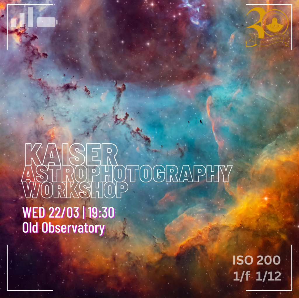 Breathtaking and surreal photos are what makes Astronomy such an aesthetically appealing study – But how are such stunning photos actually taken? Hear about the technique of long exposure, some tips and tricks of astrophotography and learn how to create beautiful light paintings with your phone during a workshop by Bowen Cameron on March 22nd…