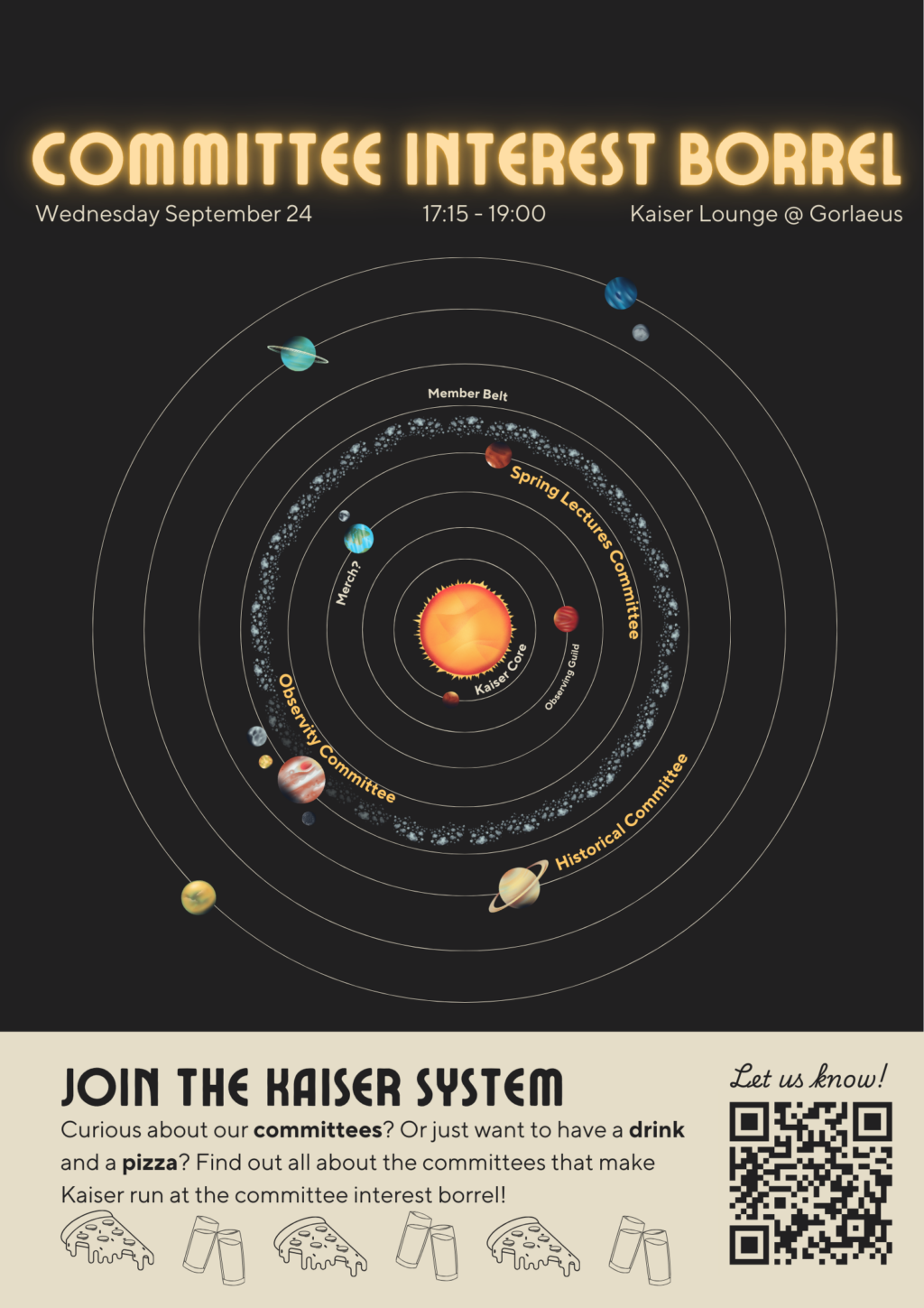 Couldn’t make it to the borrel? No worries! Send an email to kaiser@strw.leidenuniv.nl if you are interested in joining a committee. Want to know what it’s like to be in one of Kaiser’s committees? Or maybe you want to join one this year?👀 Come find out at the Committee interest borrel on Wednesday September 24th,…