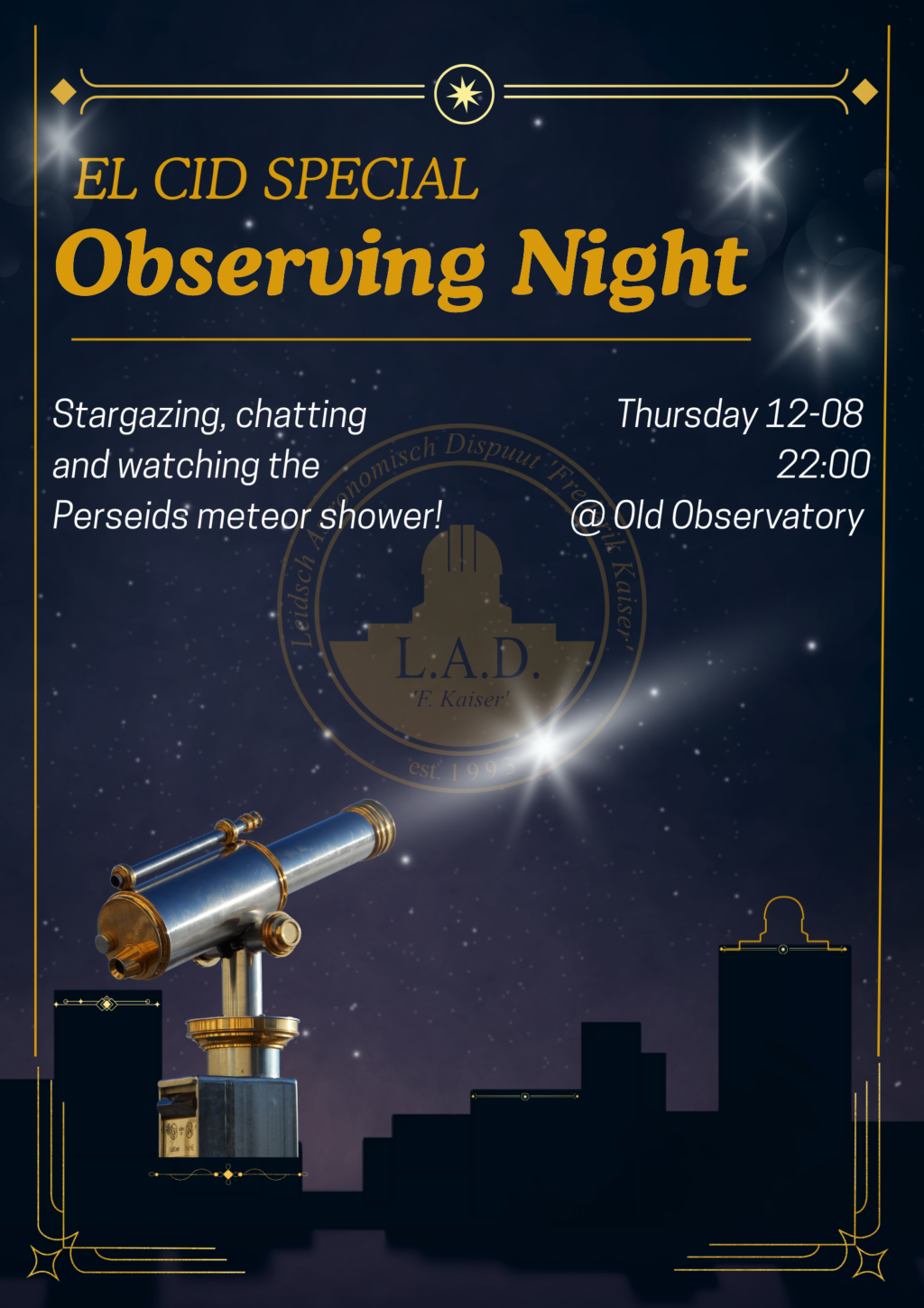 The EL CID observing night will take place on Tuesday August 12th‼Feel free to come by from 22:00 onwards and you might even see some of the Perseid meteor shower 🙂