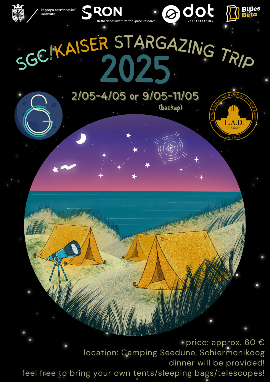 For the first time, Kaiser went on an Observing Trip to Schiermonnikoog together with Sirius A from Groningen! With clear skies and a beautiful camping ground, we had a great time observing and having fun with friends 🙂 If you would like to know more about the possibility of a 2026 Observing Trip (and Observing…