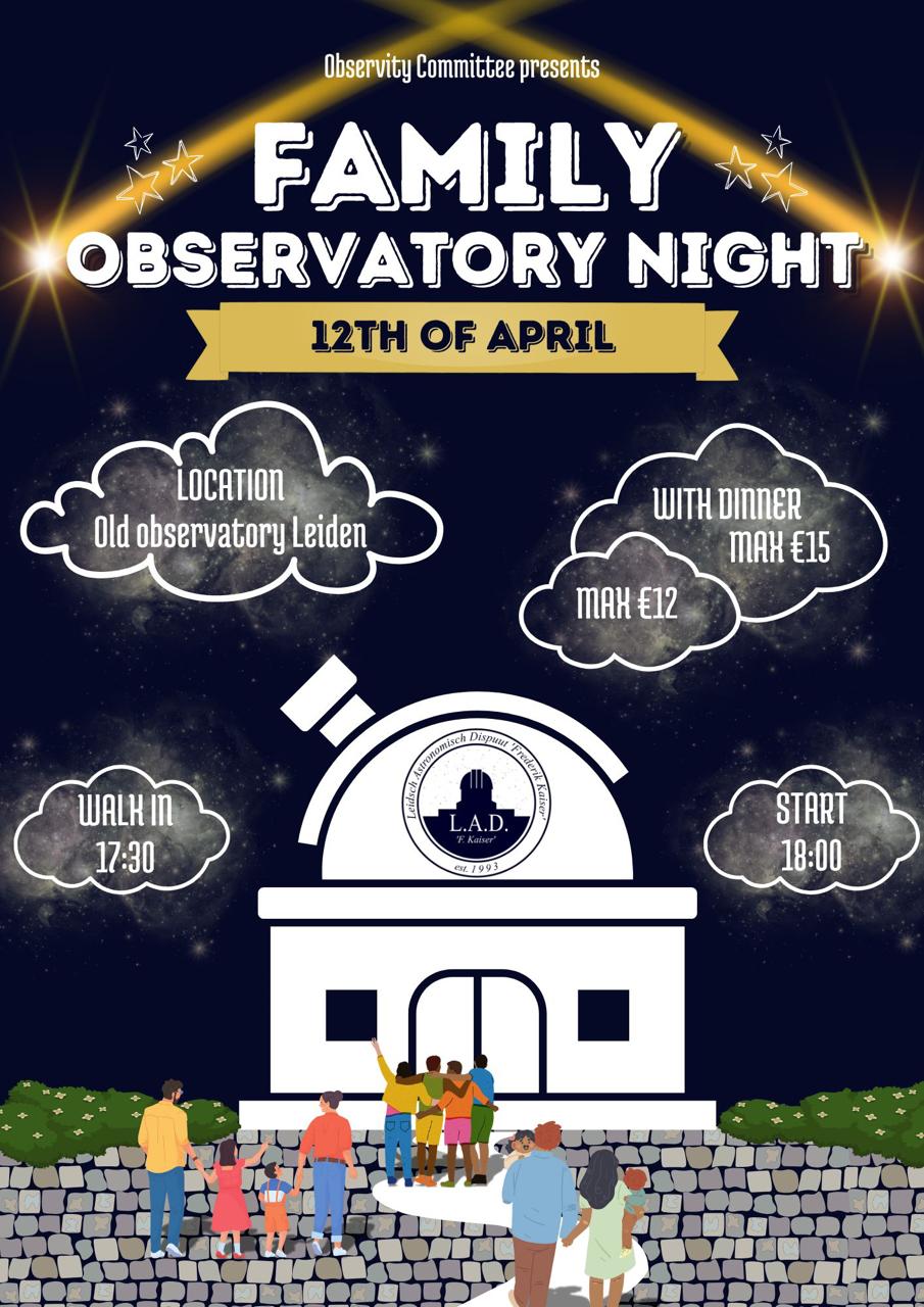 On the 12th of April, the Observity Committee had one of their largest activities of the year: the Family Observing Night! With an astonishing amount of attendees, the Observity Committee delivered on a fun night of observing, gezelligheid and many other activities!